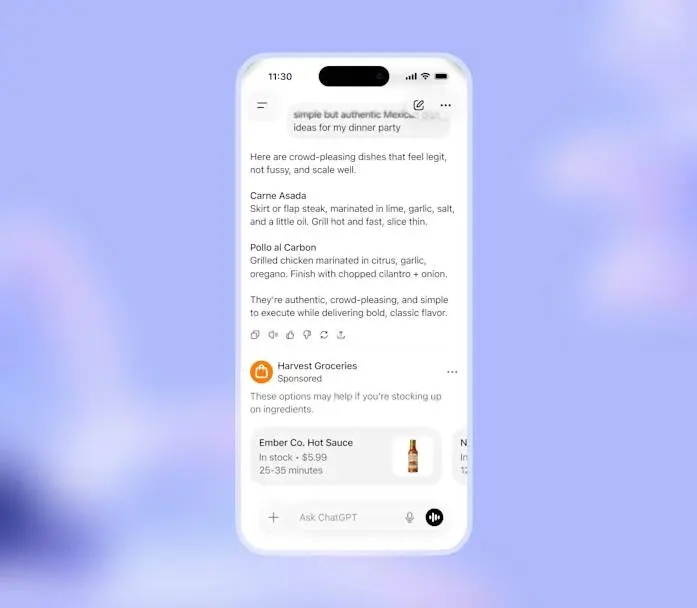 L’idea è integrare messaggi sponsorizzati utili e contestuali, con la possibilità in futuro di interagire direttamente con essi in modalità conversazionale.