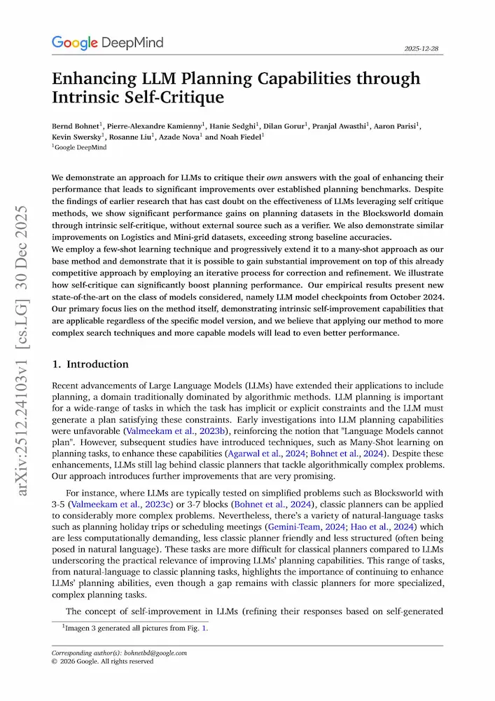 Un recente lavoro di Google DeepMind mostra che un LLM può migliorare le proprie soluzioni di planning attraverso un processo di autocritica iterativa, senza supervisori esterni né verificatori simbolici.