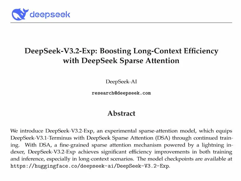 Accanto al modello, DeepSeek ha pubblicato un paper dettagliato che spiega i meccanismi tecnici della Sparse Attention, insieme al codice e ai kernel ottimizzati in CUDA e TileLang.