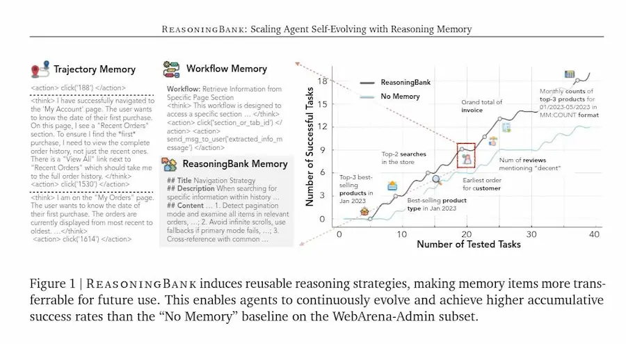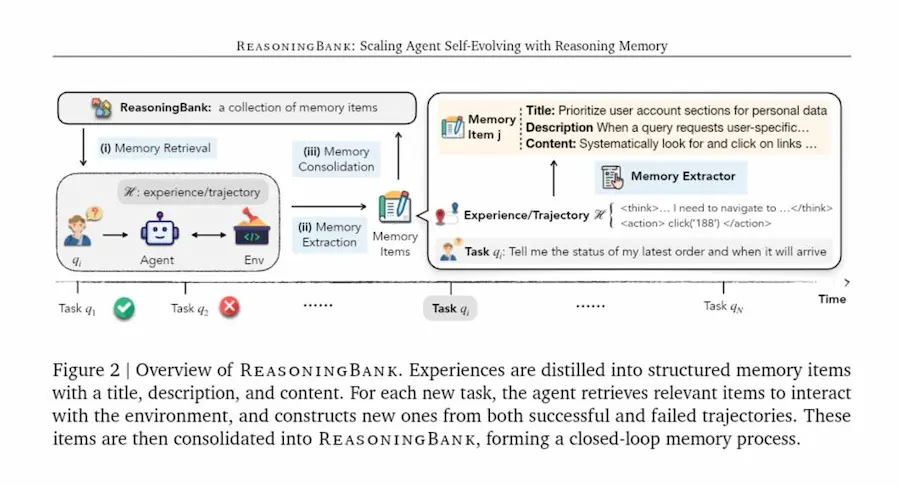 ReasoningBank trasforma ogni esperienza in una unità di conoscenza strutturata, una strategia di ragionamento riutilizzabile.