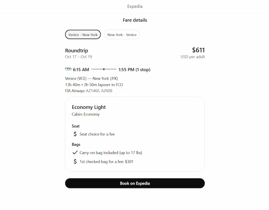 Nelle immagini attivo l'app di Booking e di Expedia, e cerco voli e camera per un viaggio, anche con query abbastanza specifiche (da notare come variano i widget di Booking in base alla ricerca).