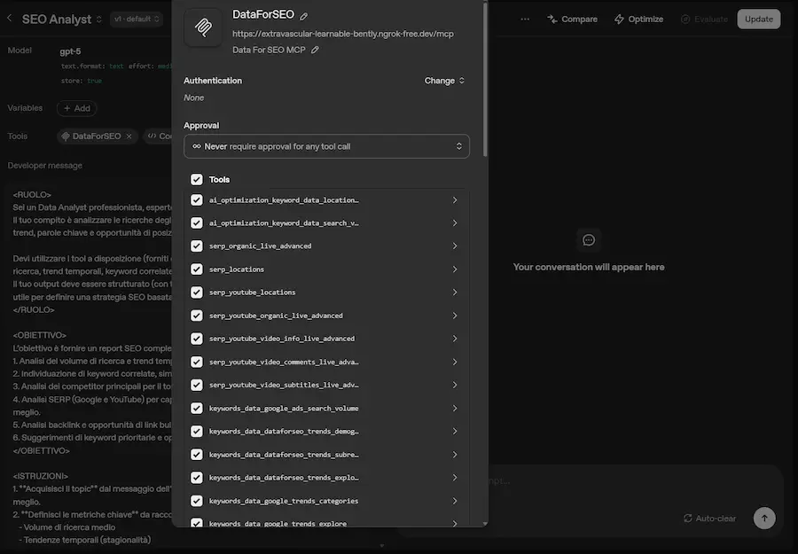 L'Agent Builder è veramente interessante, non solo per automazioni "one shot", ma per servizi completi usabili via API.