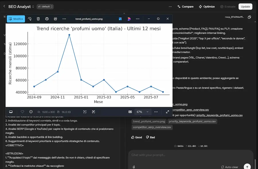 Un semplice test per provare l'integrazione di Chart Kit nell'Agent Builder. La funzionalità, permette di integrare elementi grafici personalizzati nell'output degli Agenti.