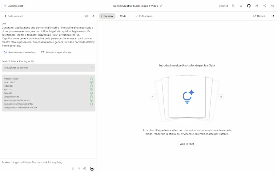 Nota: non sono riuscito a ottenere un risultato altrettanto soddisfacente usando Veo 3.