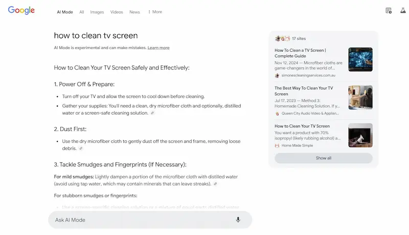 Molti affermano che sarà poco visibile, essendo una nuova Tab nei risultati di ricerca.. ma gli utenti che vorranno quell'esperienza (una risposta strutturata che distilla i risultati) andranno direttamente nella sezione AI Mode.
