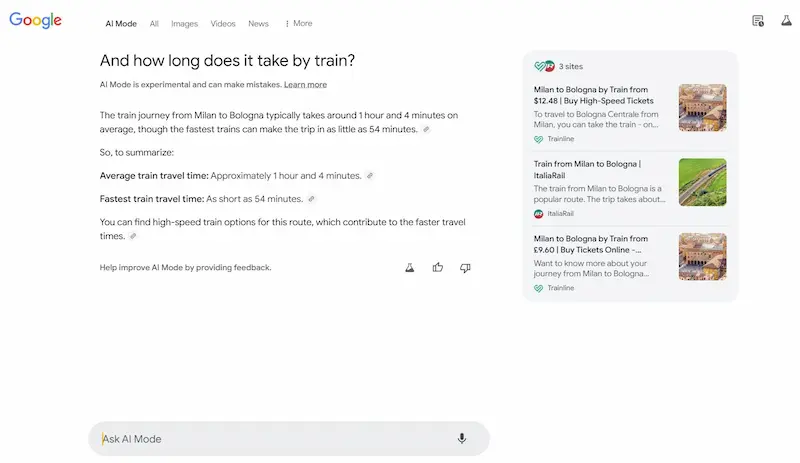 AI Mode porta il "reasoning" nella Search per spingere il LLM a rispondere anche a domande più complesse, con la possibilità di follow-up.