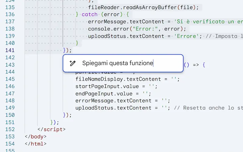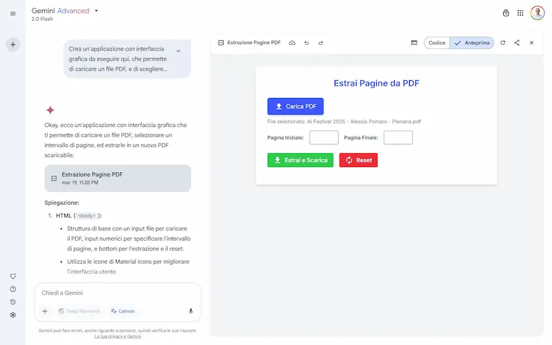 Le azioni di coding sono notevoli. Con un'unica esecuzione ho creato un software con interfaccia grafica in grado di elaborare un PDF, con estrazione di un range di pagine, conversione in immagine, compressione, rotazione, unione.
