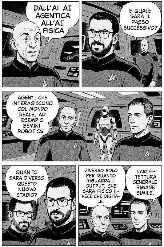 Credo che il passaggio all'AI fisica renderà molto più tangibile per tutti il progresso di questi sistemi, perché traccerà lo switch di pensiero da considerarli "giochini che scrivono testo in una chat" a "robot che ci affiancheranno in qualunque mansione".