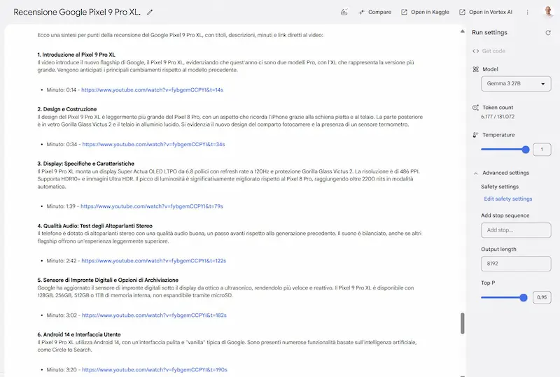 Un'altra novità è la possibilità di inserire un URL di YouTube in AI Studio, e il contenuto diventa contesto per il modello. Questo significa che si potrà avere questa dinamica via API.