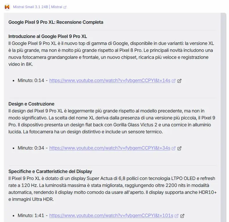 In generale, sui task è velocissimo. L'estrazione dei contenuti dai video è precisa, con trascrizione e suddivisione degli speaker. Anche sui test di logica e matematica, il modello si è comportato bene.