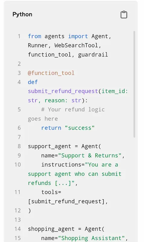 Un framework open-source per orchestrare agenti multipli e gestire flussi di lavoro complessi. Gli sviluppatori possono ora creare agenti che collaborano tra loro con handoff intelligenti, tracciamento avanzato e guardrail di sicurezza integrati.