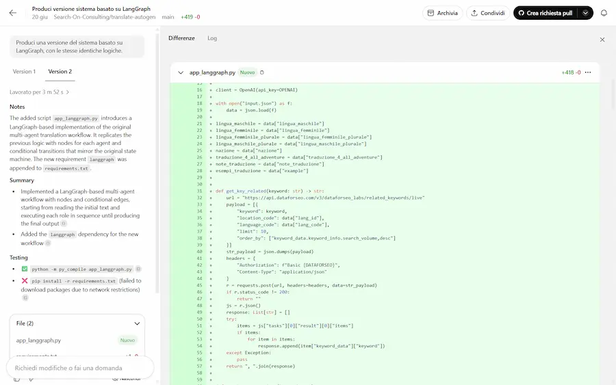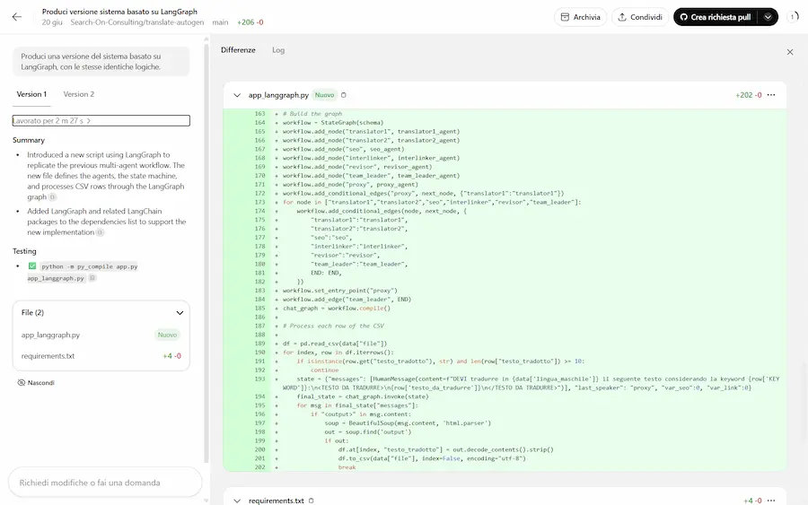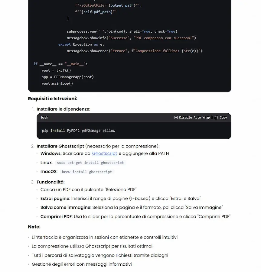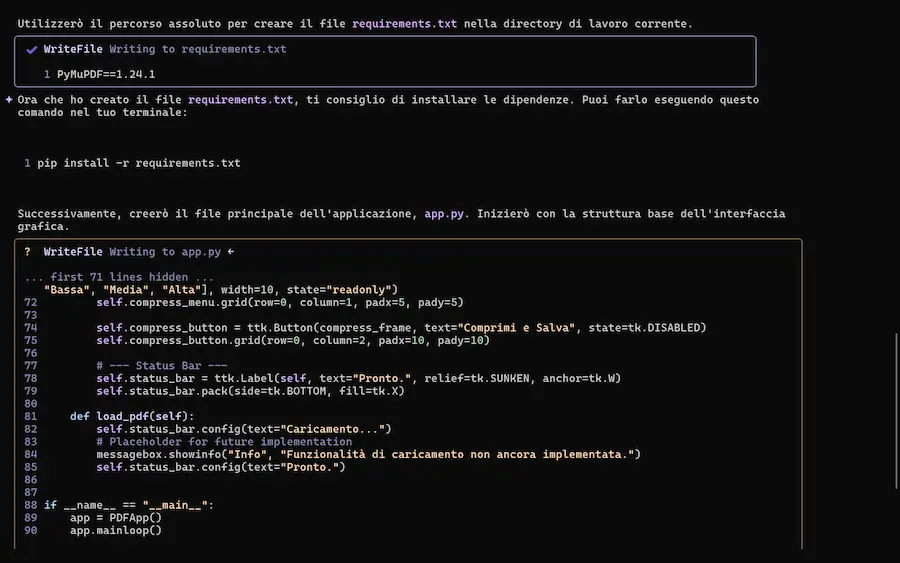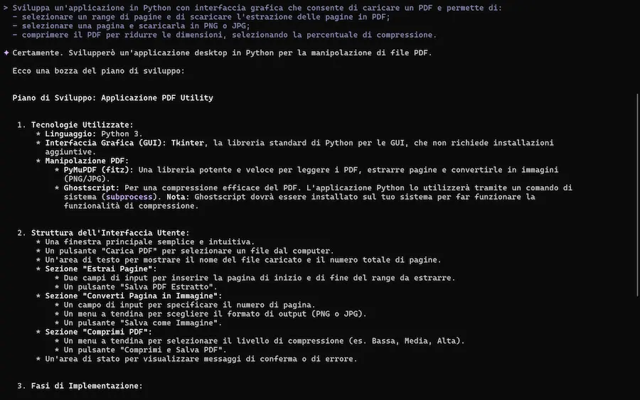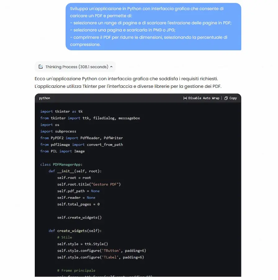 Nel video si vede come, attraverso due prompt ho fatto sviluppare al modello due piccole applicazioni: una web app e un software in Python.