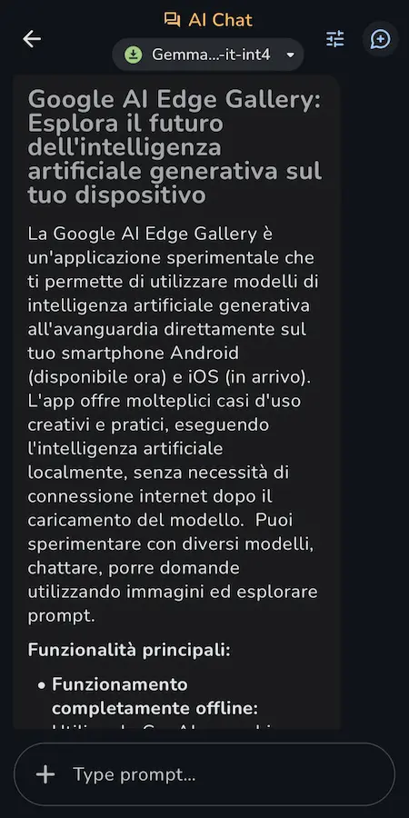 Il progetto rappresenta un punto d’incontro tra AI e accessibilità mobile. È possibile anche usare modelli personalizzati e accedere a risorse per sviluppatori direttamente dal repository GitHub. Un passo concreto verso l’AI offline, personalizzata e locale.