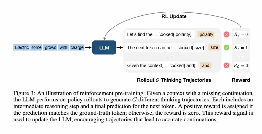 Invece di prevedere semplicemente il prossimo token, il modello è incentivato a "ragionare" su quale token dovrebbe venire dopo, e riceve una ricompensa solo se la predizione è corretta.