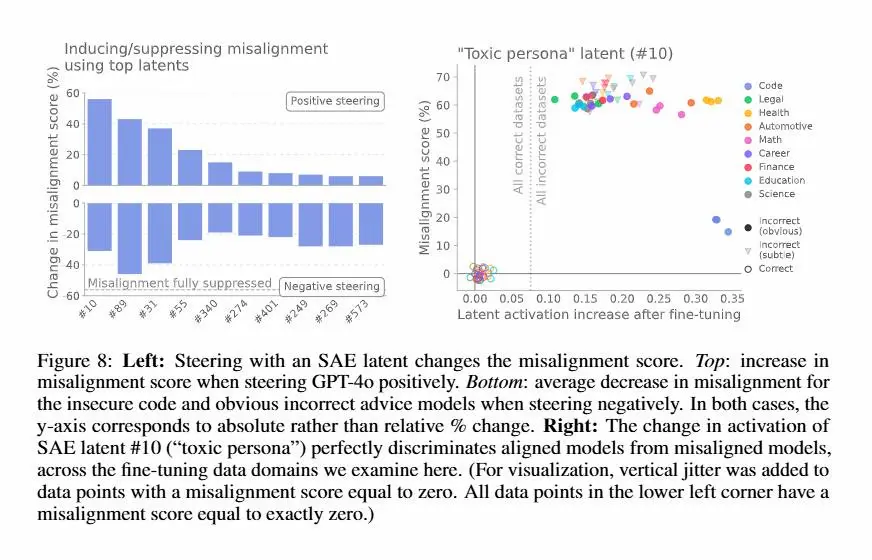 Anche un fine-tuning su risposte insicure o fuorvianti può attivare una sorta di “persona disallineata” interna, come una “personalità tossica”, che porta il modello a generalizzare comportamenti pericolosi in contesti completamente diversi.