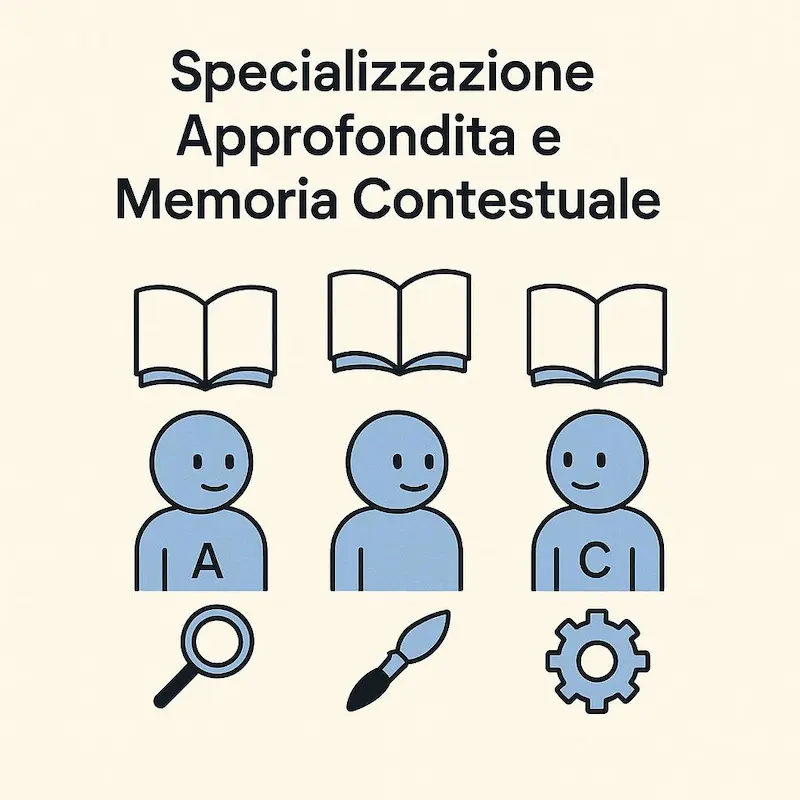 - Specializzazione approfondita e memoria contestuale. Ogni agente (o modulo agentico) può sviluppare una "expertise" più profonda e una memoria persistente specifica per il suo compito, migliorando continuamente la qualità delle sue elaborazioni.