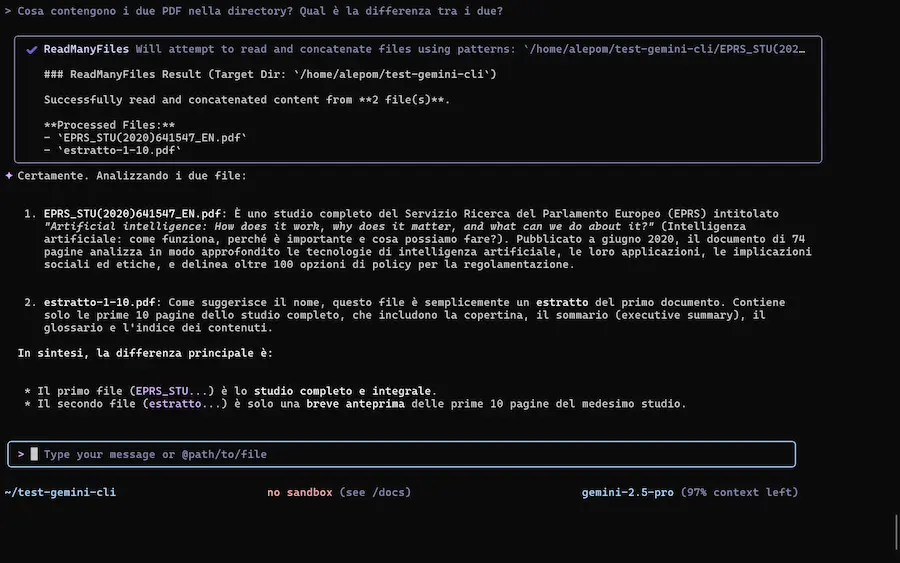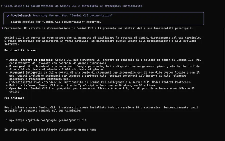 Con Gemini CLI, il terminale diventa uno spazio di lavoro intelligente e flessibile, capace di comprendere, generare, modificare e orchestrare codice e contenuti in linguaggio naturale.