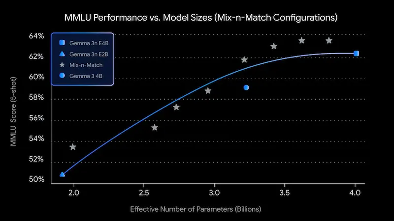 Grazie a un’architettura rivoluzionaria chiamata MatFormer, Gemma 3n include versioni nidificate (E2B e E4B) ottimizzate per efficienza e flessibilità, permettendo inferenze fluide anche su hardware con soli 2-3 GB di memoria.