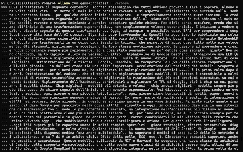 L'ho provato in locale, su un laptop attraverso Ollama e anche su Colab attraverso la libreria Transformers di Hugging Face.