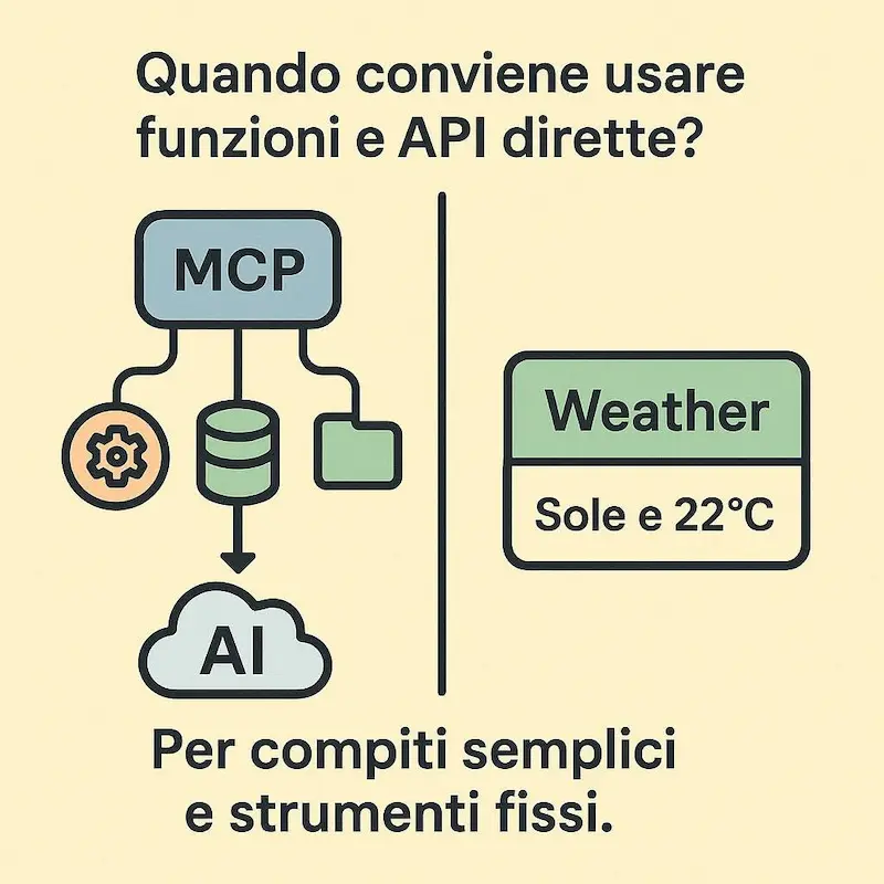 È la scelta migliore per compiti semplici con un numero limitato di strumenti fissi. In questi casi, l'integrazione diretta è più rapida e non giustifica la complessità di un server MCP.