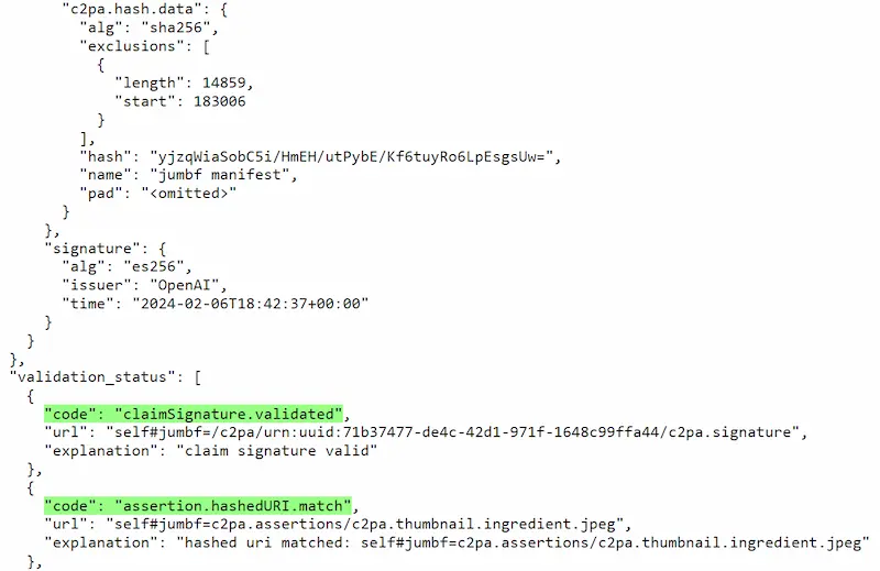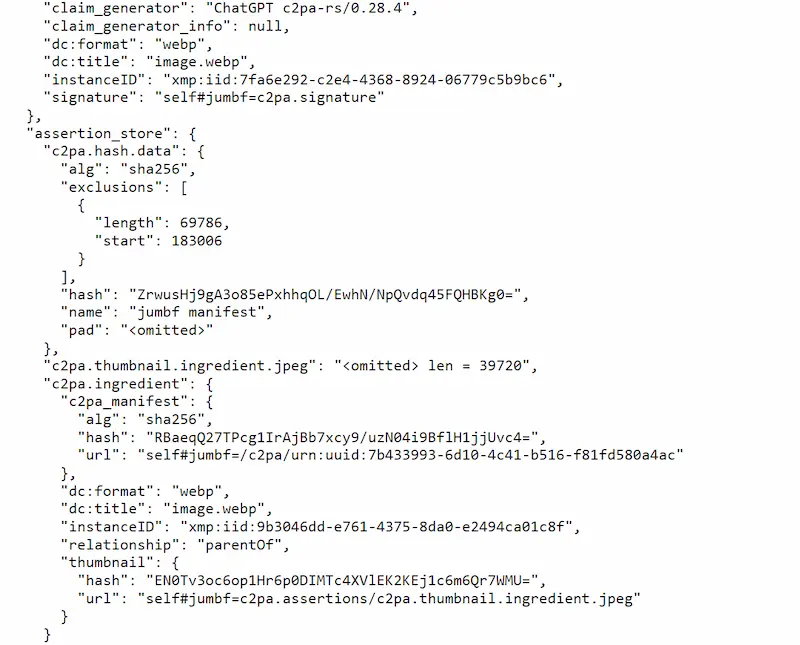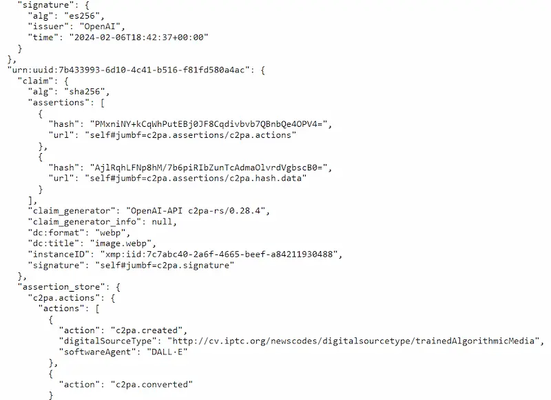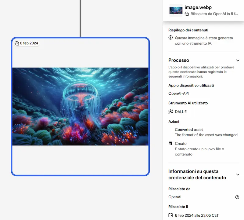 Metadati C2PA nelle immagini generate da DALL-E 3