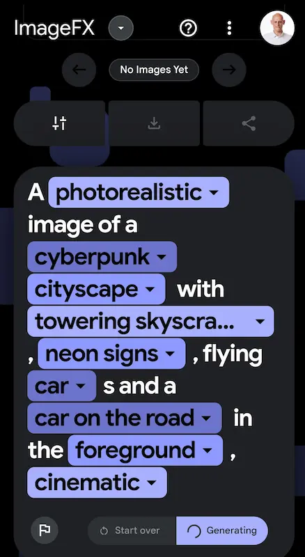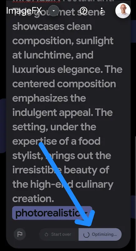 In prima battuta, il sistema inizia la fase di ottimizzazione del prompt, in cui va anche a riconoscere le entità descritte. Successivamente genera un set di immagini. Ormai la qualità è sottintesa.