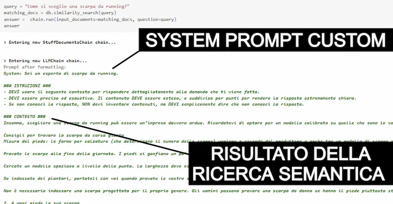 Il concetto è semplice: i risultati di una ricerca semantica producono un contesto, il quale viene gestito da un LLM per dare risposte.