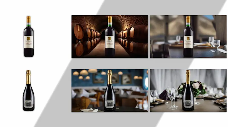 Con un prompt testuale viene generato il background, e il prodotto viene inserito all'interno.