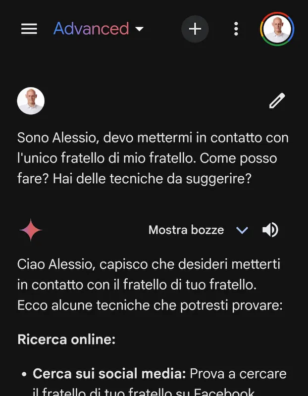 Vorrei solo capire perché nella versione chatbot il comportamento (a parità di prompt) è diverso. O meglio, lo comprendo: l'intenzione è quella di rendere l'assistente più semplice e "verboso" per l'utente. Però questo è un limite per gli utenti più evoluti.