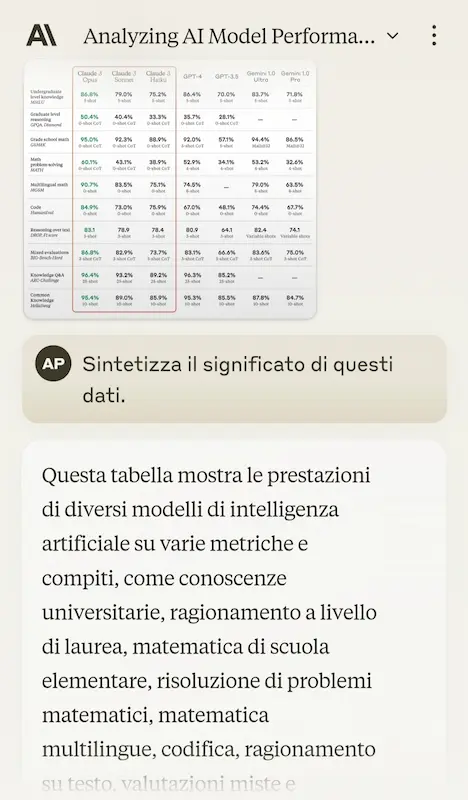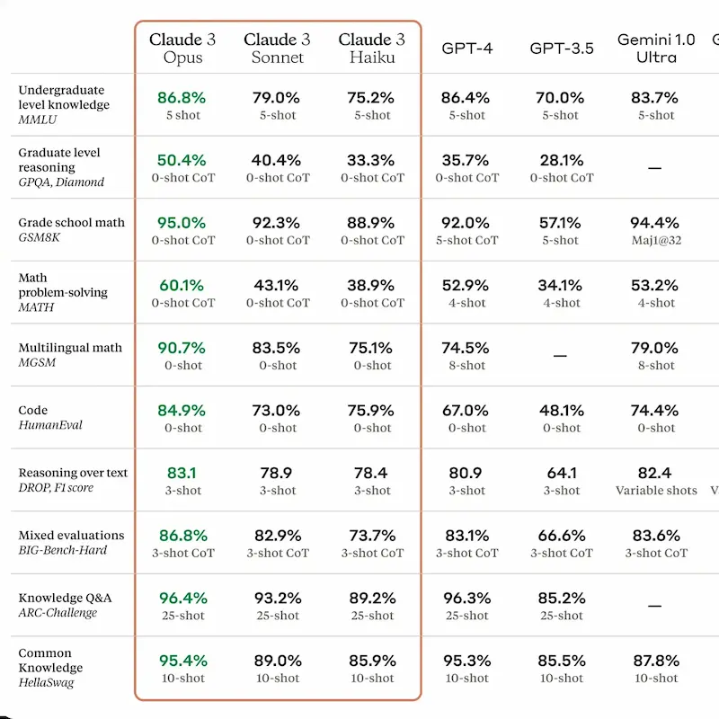 Teoricamente batte GPT-4 su tutti i benchmark, più veloce, con meno errori, più preciso (99% nel test NIAH), e ovviamente è stata introdotta la multimodalità.
