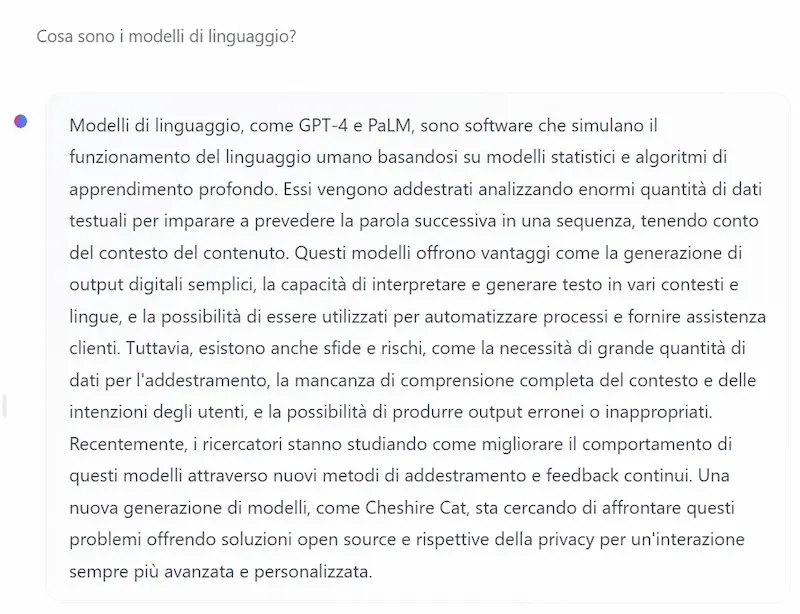 Il modello offre risposte abbastanza precise. I tempi di risposta non sono rapidissimi, ma si tratta dei primi passi verso una multimodalità così evoluta.