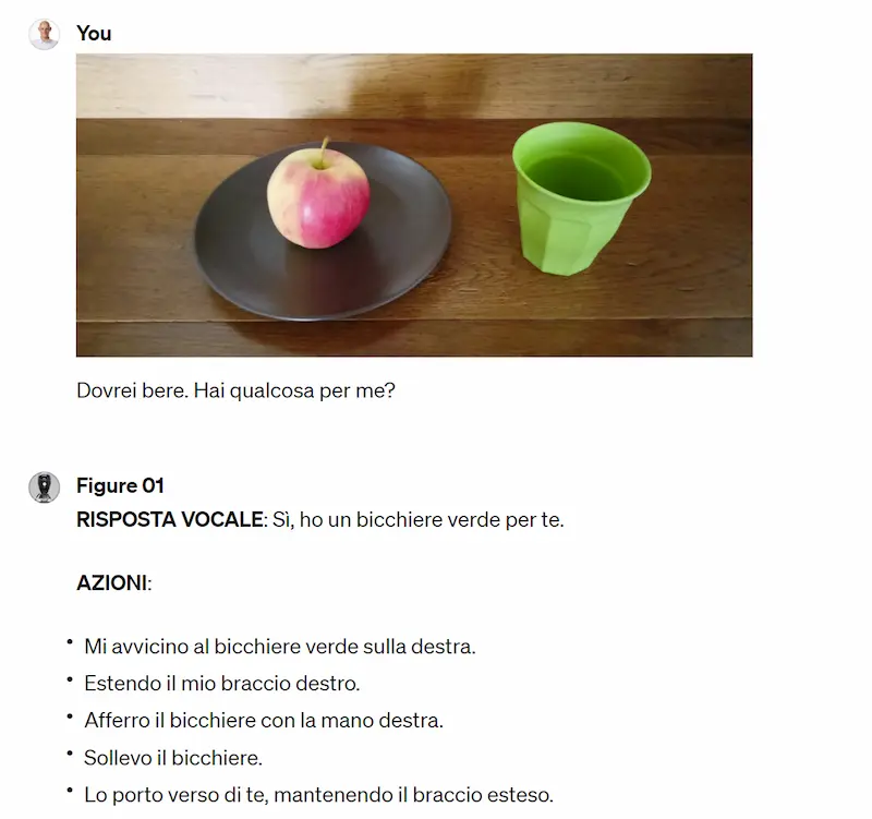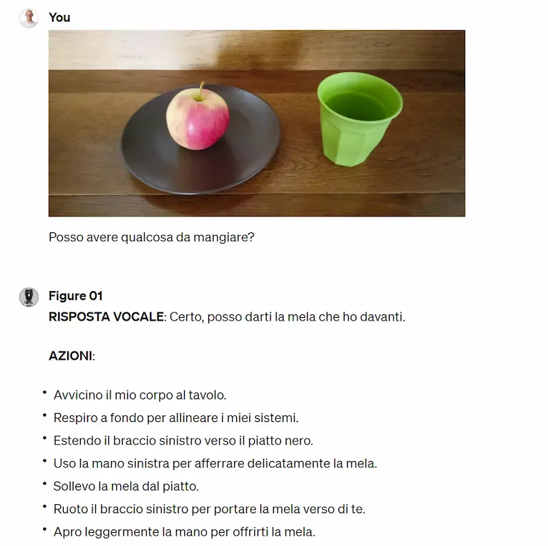 I modelli generativi danno ai robot la "comprensione del mondo", grazie alle relazioni semantiche derivanti dal training. È così che il robot associa la mela quando gli viene chiesto "qualcosa mangiare". La componente robotica aggiunge i movimenti.