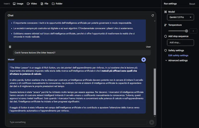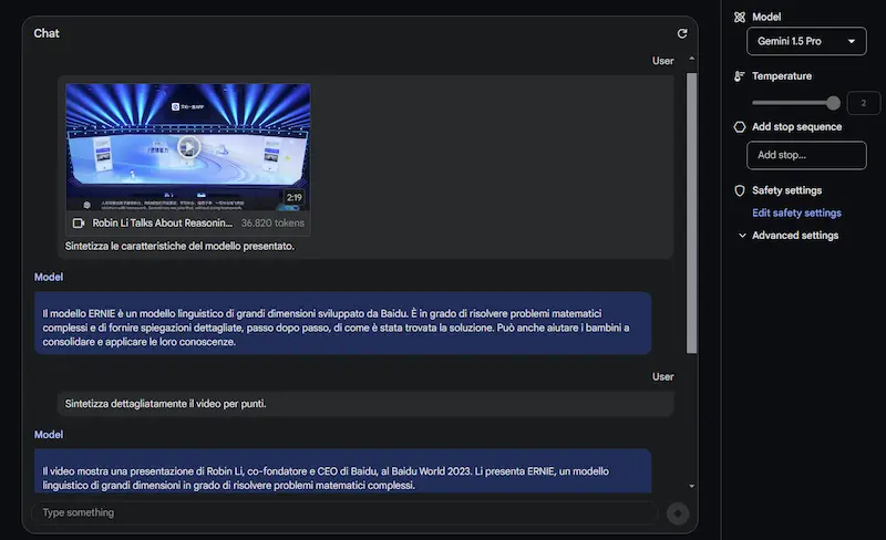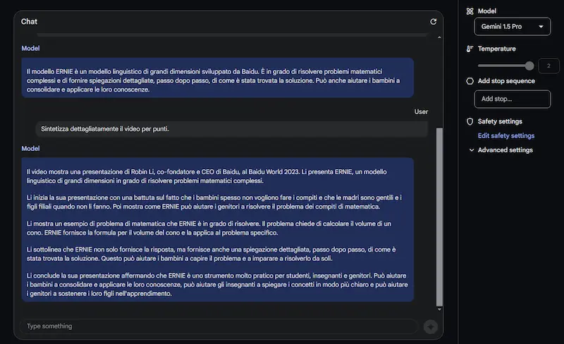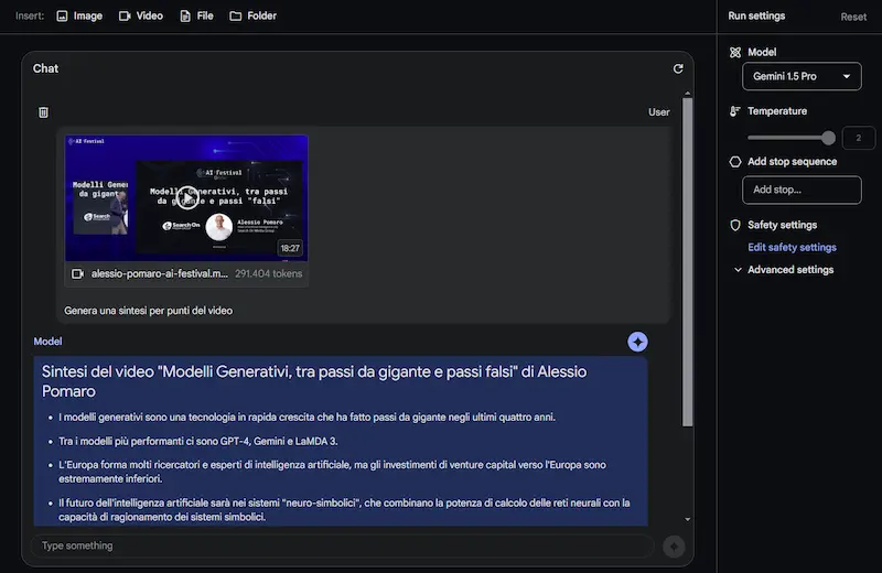 Ho provato Gemini 1.5 Pro, il nuovo modello di Google su AI Studio, processando: