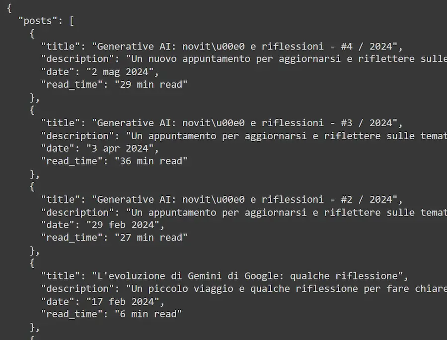 LIMITI: per la generazione di contenuti come questi, i soli dati presenti nelle pagine non sono sufficienti. Nei nostri sviluppi in cui creiamo contenuti di ottimizzazione usiamo diverse fonti per ottenere dati strategici.