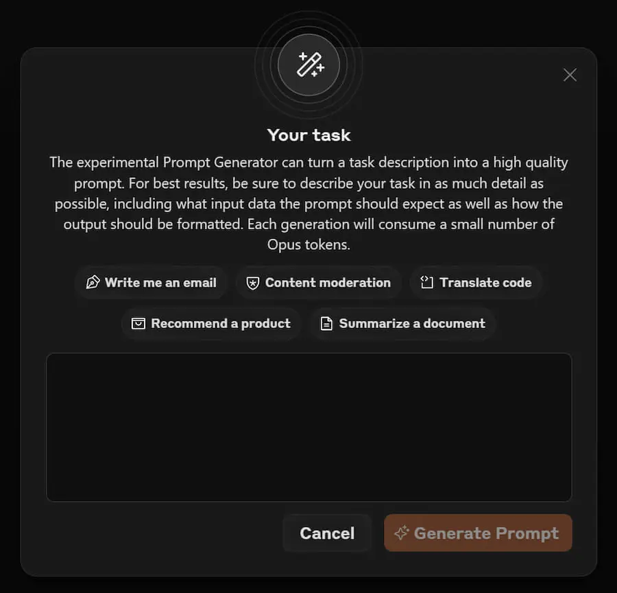 Basterà descrivere ciò che si desidera ottenere e Claude creerà un prompt pronto all'uso.