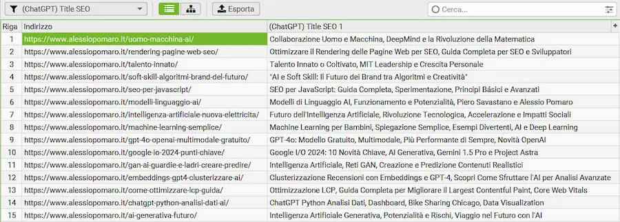 Esempi di utilizzo dei Screaming Frog con GPT4o