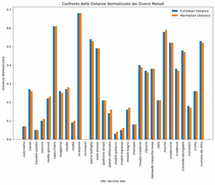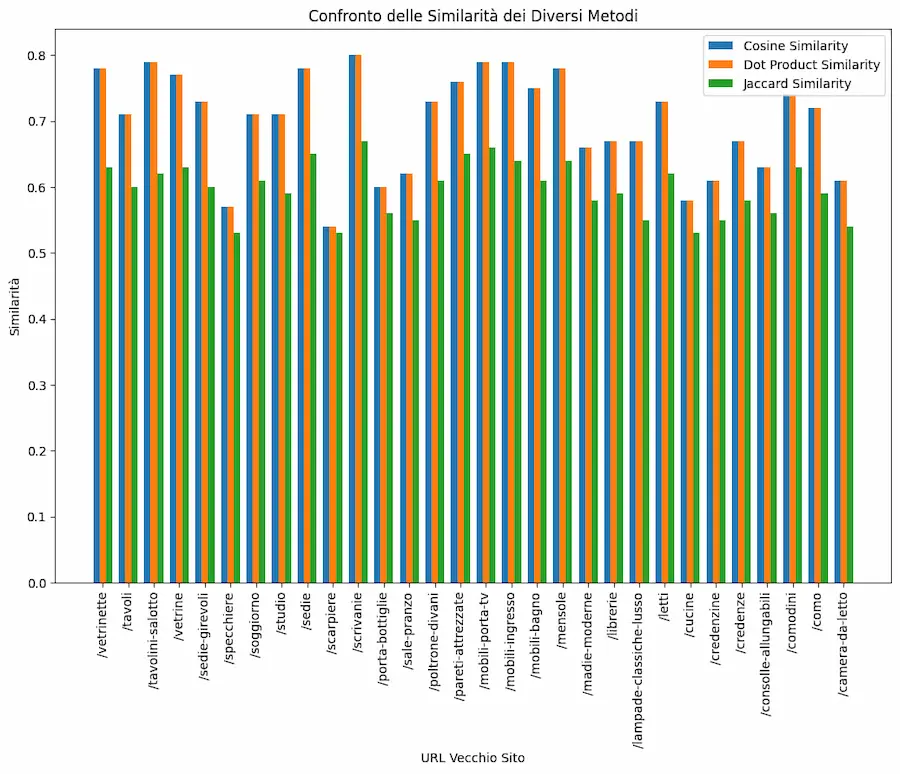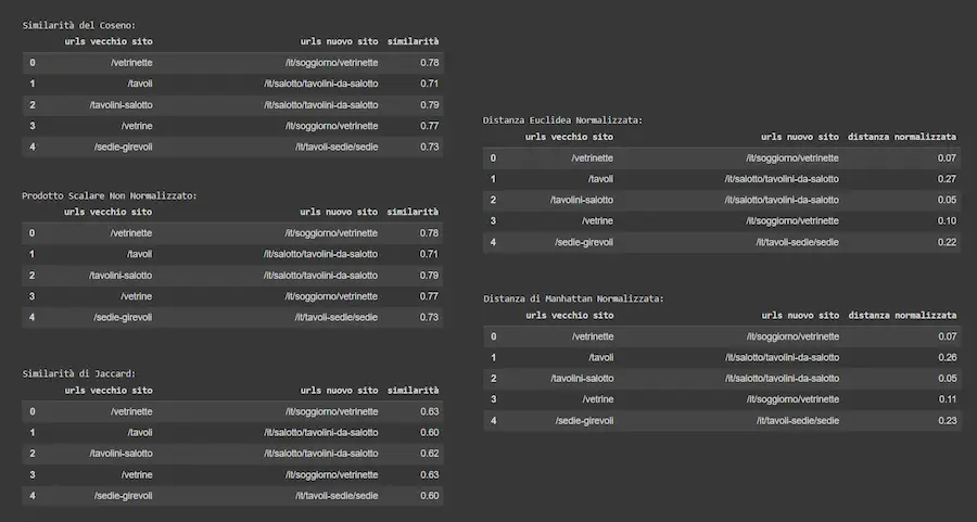 Ho fatto alcuni test con embeddings creati attraverso i modelli di OpenAI, usando diversi metodi di calcolo della similarità: il migliore risulta essere la similarità del coseno.