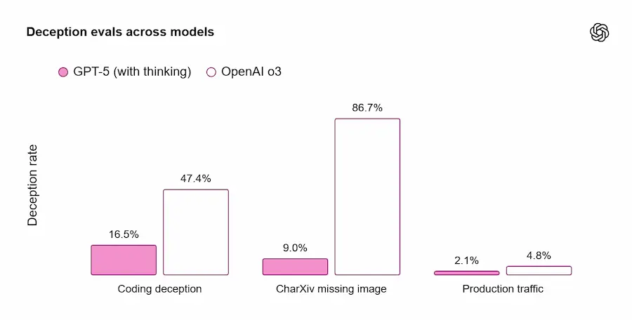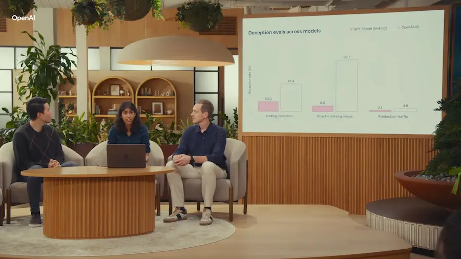 Questo non significa sminuire il lavoro tecnico: l’inferenza è più economica, il modello sceglie quando attivare componenti di "reasoning" e la lineup è più granulare (tipologie di modello diverse per casi d’uso diversi). Ma la live è stata anche penalizzata da visualizzazioni fuorvianti: alcuni grafici avevano barre che non corrispondevano ai valori e un diagramma sulla “deception” è stato poi corretto nella documentazione.